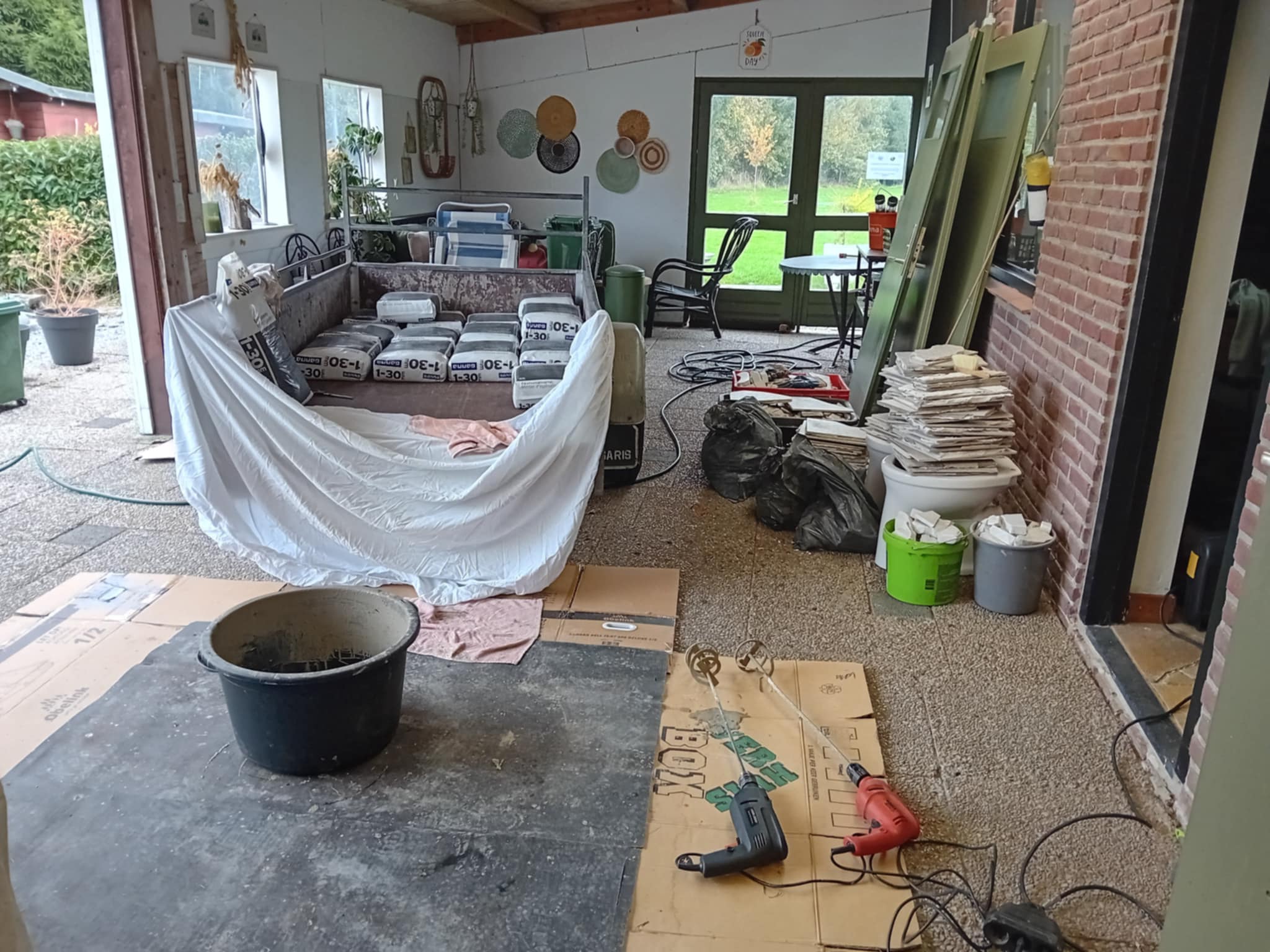 Vol plannen en enthousiasme sloten we eind september het hek van de camping en gingen hard aan de slag. OK … onze planning om een gerenoveerd vakantiehuisje, studiootje, vernieuwd sanitair, binnenruimte, meer groen, nieuwe vuurplaats, aanbouw aan het woonhuis en parkeerplaats te realiseren voor het nieuwe seizoen was misschien wat aan de enthousiaste kant …